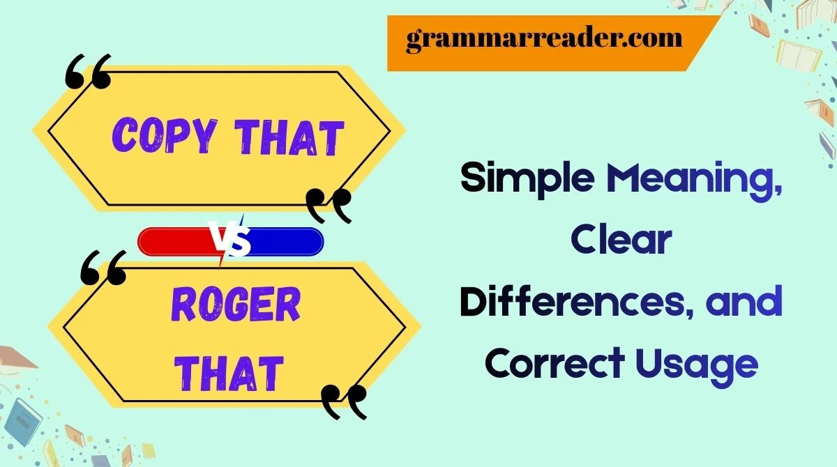 Once you understand them, they become very easy to use. This article explains Copy That vs Roger That in simple, clear language. No complex words. No heavy explanations. Just real meaning, clear examples, tables, and practical advice.